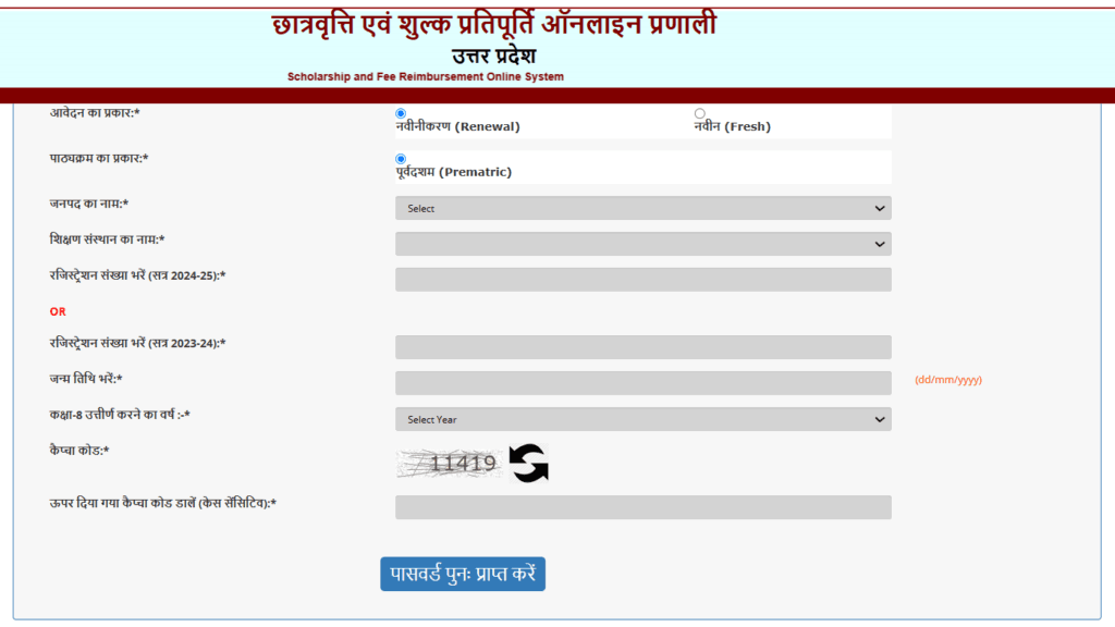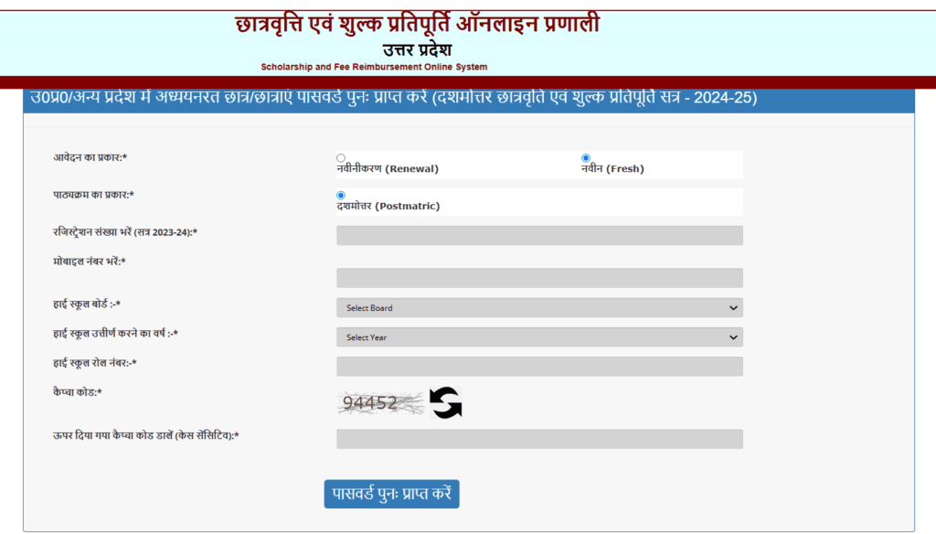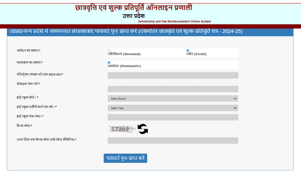 पोस्ट-मेट्रिक अदर देन इंटरमीडिएट स्टूडेंट यूपी स्कॉलरशिप पासवर्ड रिसेट प्रक्रिया