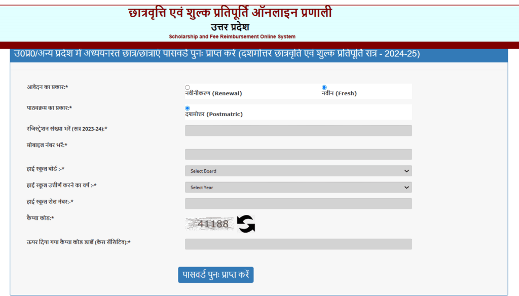पोस्ट-मेट्रिक अदर स्टेट स्टूडेंट यूपी स्कॉलरशिप पासवर्ड रिसेट प्रक्रिया